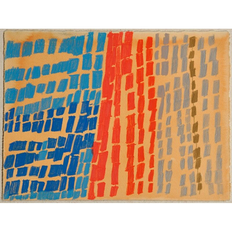 Martin Forster’s minimalist abstract works are characterised by faceted patterned grids. Working in coloured pencils on paper in landscape format, his compositions are mapped out methodically by drawing squares in rows to create a grid structure, assigning a number to each and colouring. His devotion to his process has remained consistent throughout his practice. The colour palette of each work relates directly to his subject, which focuses on consumables such as the colour of particular soft drinks, ice creams, sweets, tea and their packaging and labels.