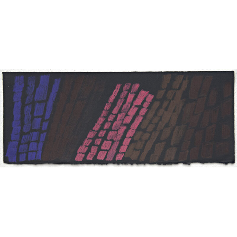 Martin Forster’s minimalist abstract works are characterised by faceted patterned grids. Working in coloured pencils on paper in landscape format, his compositions are mapped out methodically by drawing squares in rows to create a grid structure, assigning a number to each and colouring. His devotion to his process has remained consistent throughout his practice. The colour palette of each work relates directly to his subject, which focuses on consumables such as the colour of particular soft drinks, ice creams, sweets, tea and their packaging and labels.