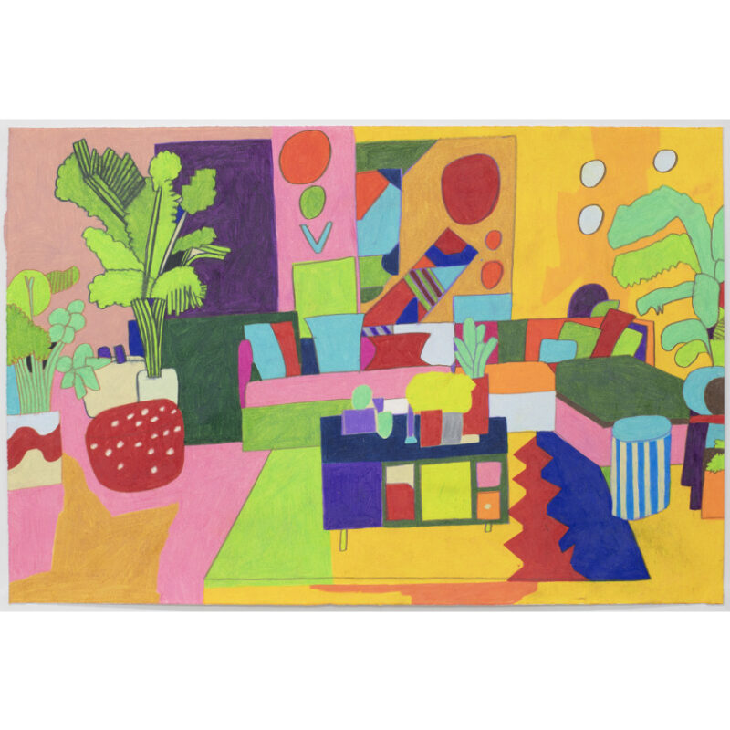 Anthony Romagnano works in pencil, paint, and digital media. His process begins with close observation of source material, which he reinterprets through an exacting and immersive drawing practice. Working predominantly with Prismacolour pencil, he builds dense, mosaic-like compositions of saturated colour that extend edge to edge. Drawing from popular culture, domestic life, and the natural world, Romagnano transforms familiar imagery into vivid, semi-abstract forms that pulse with rhythm and intensity. Each field of colour is meticulously applied to create flattened, harmonious compositions that celebrate detail, colour, and structure, revealing both the patience and vitality of his practice.