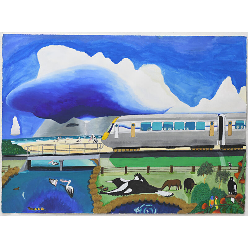 Miles Howard-Wilks is a multi-disciplinary artist whose practice spans painting, ceramics, photography, and digital art. Deeply rooted in an Australian visual language, his work features recurring motifs such as iconic animals, landscapes, seascapes, transport, and landmarks. His ceramic sculptures extend these themes into three dimensions, combining playfulness with a refined attention to form and texture. Across all media, trams, magpies, reptiles, and ocean creatures are treated with equal focus and care, each rendered with clarity and elegance.