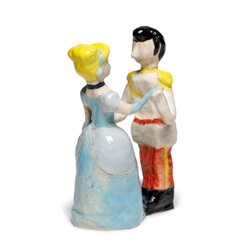Daniel Pace’s small works on paper are executed in pencil with blocks of solid colour and strong outlines, often on coloured surfaces. He is also a skilled ceramicist and digital artist. Regardless of the medium he is working in, he is an ardent fan of Disney and the films of Tim Burton, both of which inspire and inform his practice. To view his work is to connect with a range of fantastical characters portrayed in much the same style as they were originally created, yet lovingly re-interpreted to reflect Pace’s unique perspective.