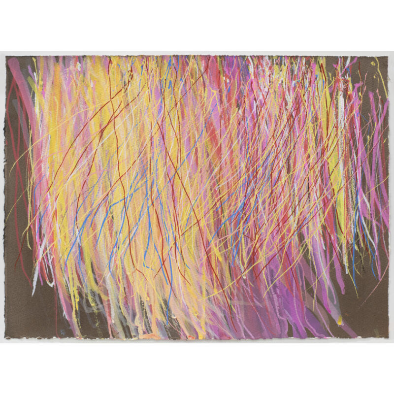 Within his practice, Ross O’Meara explores line and colour, consistently producing captivating works as part of ongoing series. The abstracted pieces are reminiscent of long grass or reeds, the layers consisting of both dense and translucent linework. The elegant, whimsical compositions possess a soft energy and speak to slow, meditative movement.