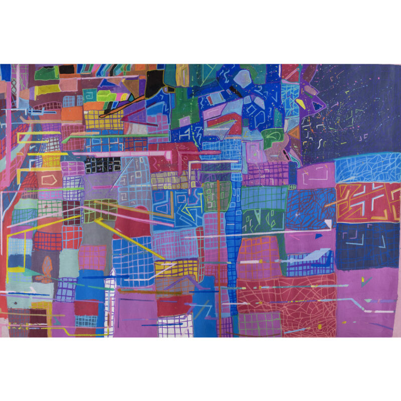 James MacSporran is an emerging artist working primarily in painting and drawing on paper and canvas. Inspired by trains and cityscapes, stylistically his art practice embodies a blend of abstraction and graffiti, resulting in fluoro-coloured and densely layered artworks that he creates from his imagination. Often synthesising text with abstraction, his work conjures references to mazes, street art and old-style arcade games.