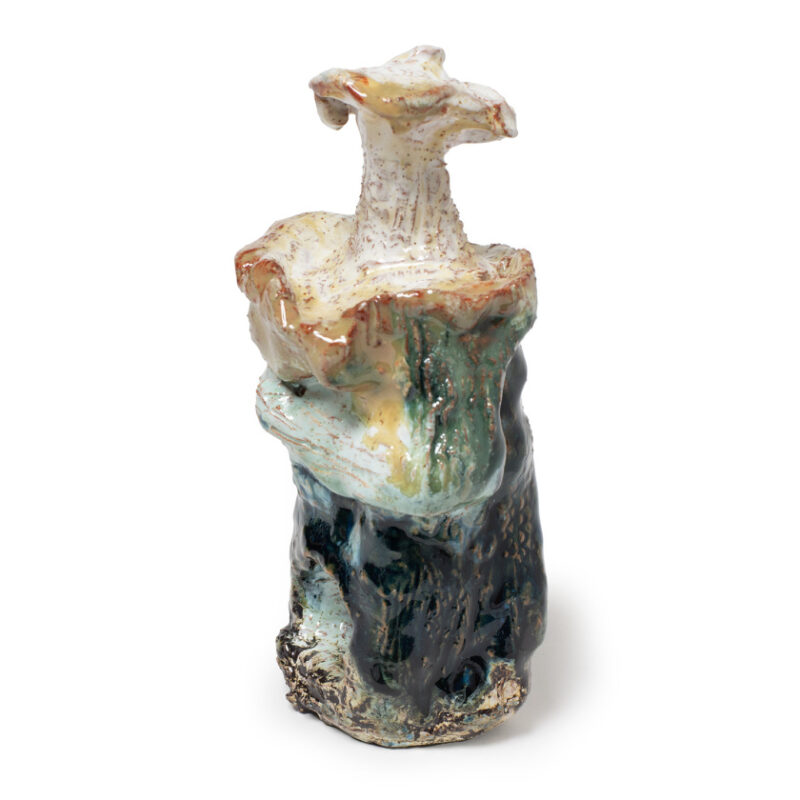 Bronwyn Hack’s practice is multi-faceted, spanning sculpture, painting, printmaking and ceramics. Her two-dimensional works merge subject and background into a unified linear perspective, reflecting her distinctive approach to composition. Throughout her career, Hack has consistently explored themes involving animals—particularly dogs—as well as the body and bones. Her soft sculptures use brightly coloured threads, faux fur, beads, and sequins to create anatomical forms, adding a playful, tactile quality. Hack’s ceramic works similarly draw on themes of animals, anatomy, and popular culture, tying together her diverse artistic interests.