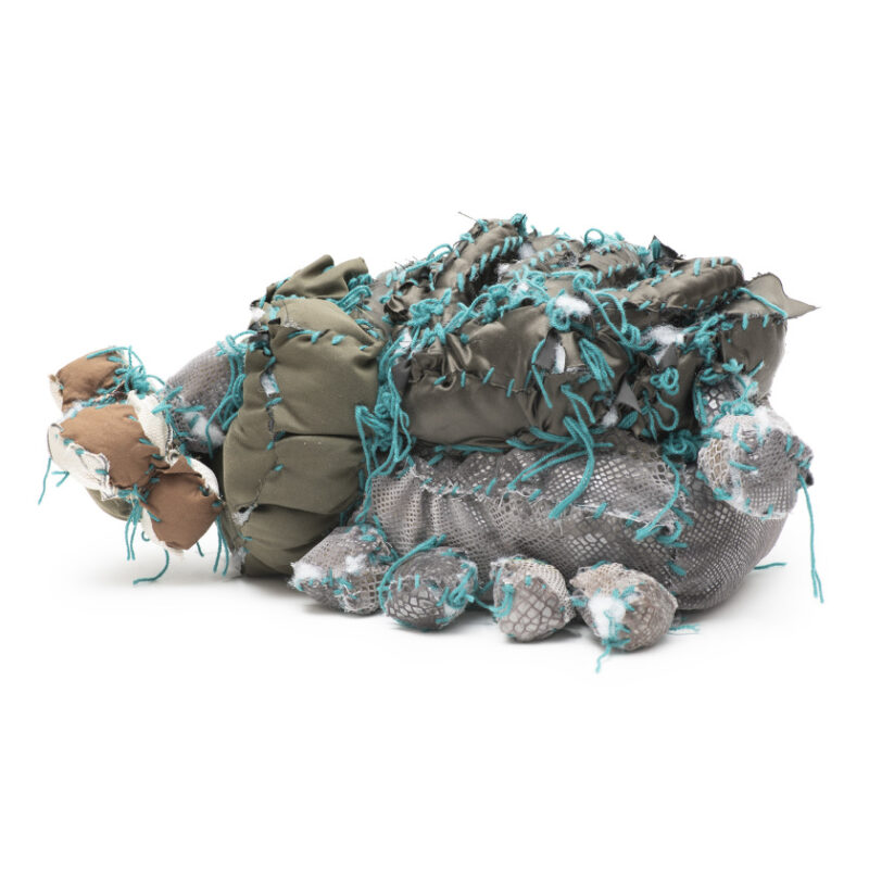 Terry Williams is an established artist with a practice spanning over three decades. Primarily focusing on soft sculpture, his work is known for its use of tactile, pillow-like forms, constructed with bold, exaggerated stitching. Williams often draws on themes of space, flight, and everyday objects, depicting helmets, astronauts, rockets, wheels and bikes. His sculptures blend real and imagined elements, resulting in works that have a distinctive physical presence. The emphasis on materiality is central to his practice—fabrics are stitched, stuffed and layered to create forms that are both expressive and raw, highlighting the artist’s direct and hands-on engagement with each piece.