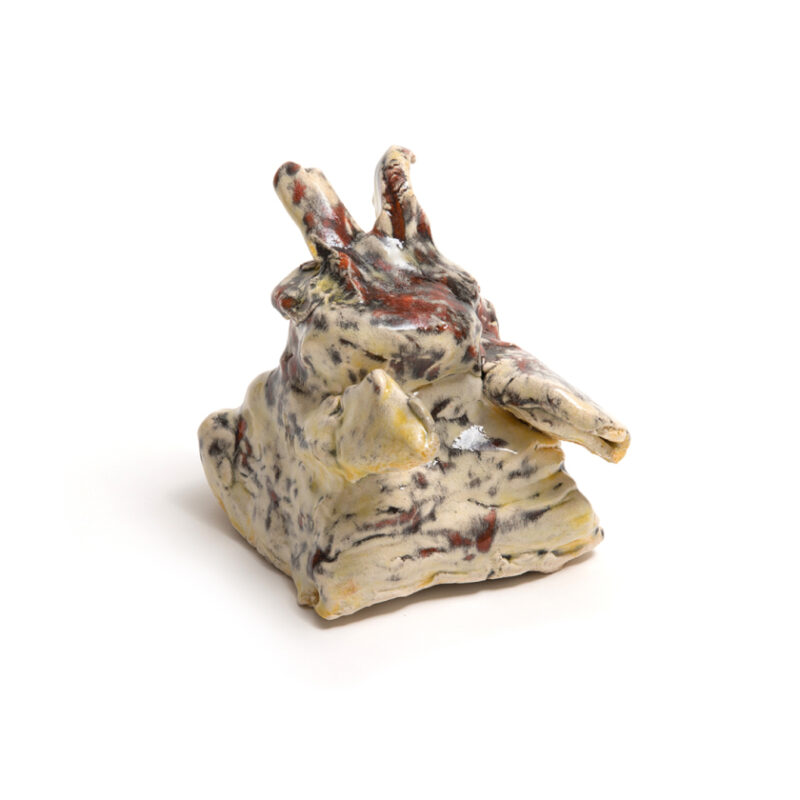 Ruth Howard is a multi-disciplinary artist working in painting and ceramics on an intimate scale. In her minimalist paintings, a single object floats on a flat plane, emphasising the interplay between shape and negative space. Her ceramic sculptures explore organic form and the transformative nature of glaze, often depicting abstracted creatures and natural elements that appear newly formed from the earth or sea. By layering and stacking clay, Howard creates vertical structures that feel organic and elemental. Their textured surfaces drip with glaze, accentuating each curve and indentation to create tactile works that invite both touch and quiet reflection.