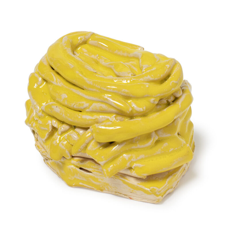 Ruth Howard is a multi-disciplinary artist working in painting and ceramics on an intimate scale. In her minimalist paintings, a single object floats on a flat plane, emphasising the interplay between shape and negative space. Her ceramic sculptures explore organic form and the transformative nature of glaze, often depicting abstracted creatures and natural elements that appear newly formed from the earth or sea. By layering and stacking clay, Howard creates vertical structures that feel organic and elemental. Their textured surfaces drip with glaze, accentuating each curve and indentation to create tactile works that invite both touch and quiet reflection.