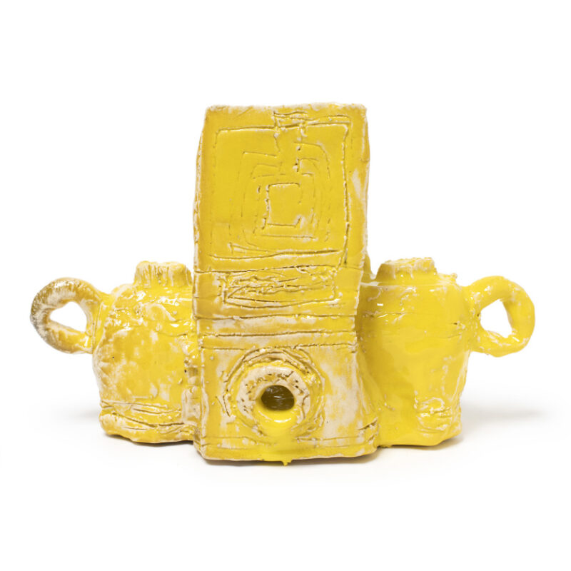 Alan Constable is an accomplished ceramicist, painter, and draughtsman, best known for his ceramic cameras and optical instruments, including telescopes and binoculars. Legally blind, Constable works closely with referent objects, committing their forms to memory before crafting them in clay. His hand-built pieces are pinched, pushed, and moulded, resulting in a gestural tactility with lustrous, wet-finish glazes. This lifelong fascination began in childhood when he made cardboard replicas of cameras.