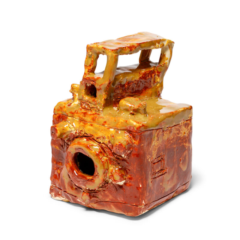 Alan Constable is an accomplished ceramicist, painter, and draughtsman, best known for his ceramic cameras and optical instruments, including telescopes and binoculars. Legally blind, Constable works closely with referent objects, committing their forms to memory before crafting them in clay. His hand-built pieces are pinched, pushed, and moulded, resulting in a gestural tactility with lustrous, wet-finish glazes. This lifelong fascination began in childhood when he made cardboard replicas of cameras.