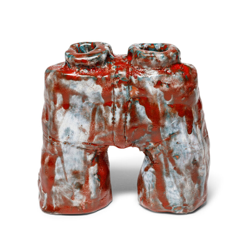 Alan Constable is an accomplished ceramicist, painter, and draughtsman, best known for his ceramic cameras and optical instruments, including telescopes and binoculars. Legally blind, Constable works closely with referent objects, committing their forms to memory before crafting them in clay. His hand-built pieces are pinched, pushed, and moulded, resulting in a gestural tactility with lustrous, wet-finish glazes. This lifelong fascination began in childhood when he made cardboard replicas of cameras.