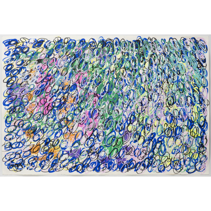 Andrew Ledwidge is an emerging artist known for his mastery of simple forms executed in a bold, maximalist style. His work features recurring motifs that highlight the power and beauty of these forms, while his dynamic line work fills both sides of the paper with depth and confidence. Through densely layered lines and a vibrant colour palette, Ledwidge infuses his paintings with an energetic and captivating presence.