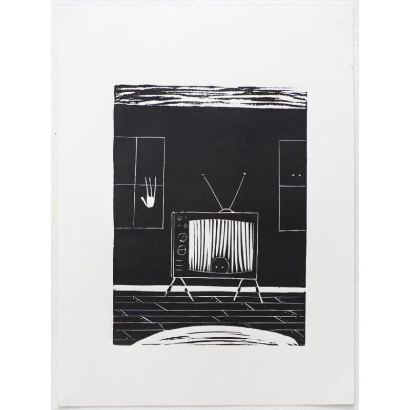 The content of Aidan’s printmaking and works on paper, runs parallel to his video work and often centres on archetypal other-worldly characters. Throughout all of Aidan’s works there is often a lingering sense of unease. Aidan is skilled at developing suspense and suggesting narratives that continue beyond the page and screen.