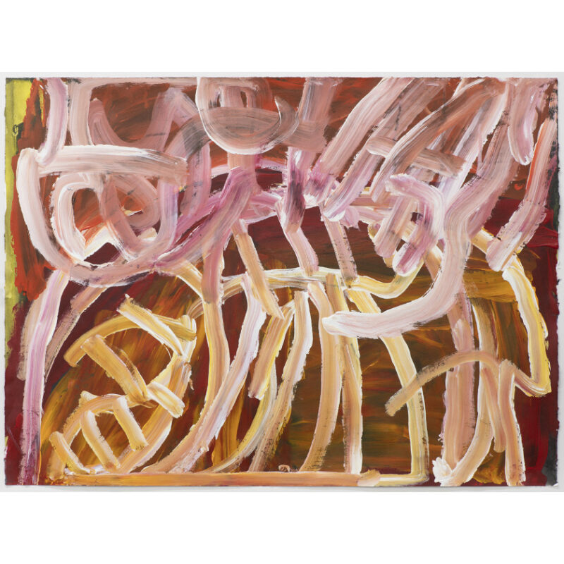 Loretta Lynch works mostly with acrylic to create medium scale paintings. Her brushstrokes are broad and gestural, and she gravitates towards a bold and primary colour palette. Loretta experiments with working from reference images and occasional animals, figures and faces feature in her abstract landscapes.