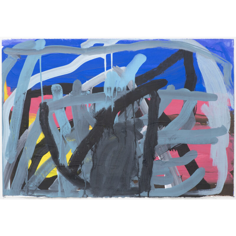 Loretta Lynch works mostly with acrylic to create medium scale paintings. Her brushstrokes are broad and gestural, and she gravitates towards a bold and primary colour palette. Loretta experiments with working from reference images and occasional animals, figures and faces feature in her abstract landscapes.