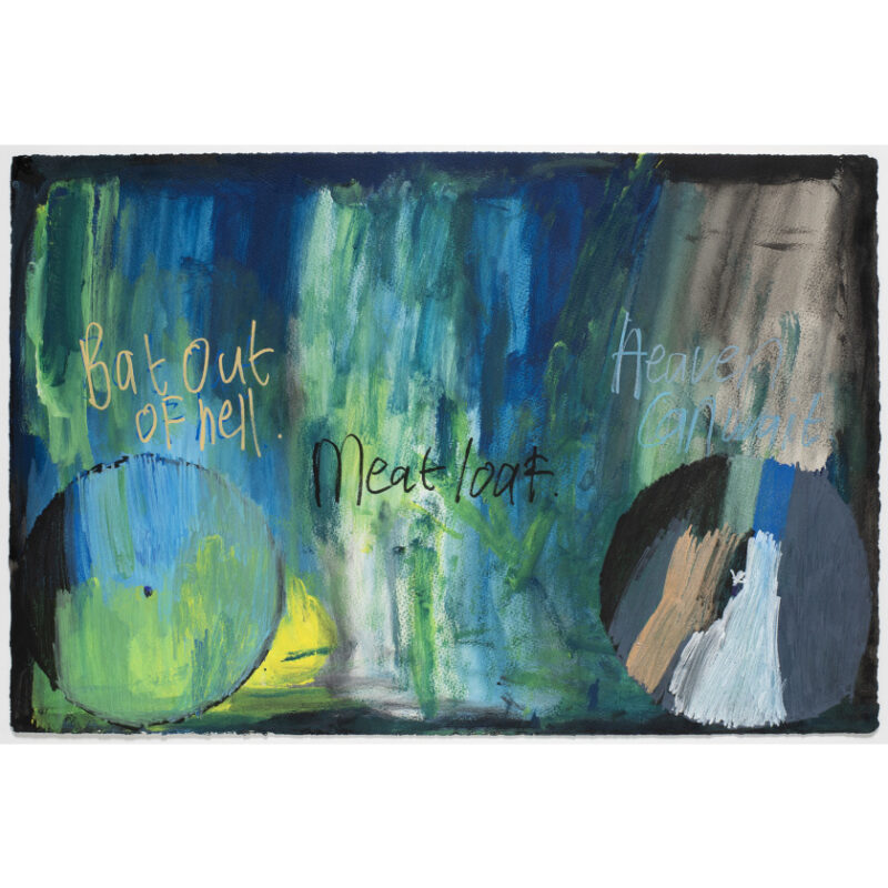 Cameron Gresswell worked primarily with acrylic and pastel on paper. His vibrant, music-inspired works often featured lyrics, band names, and artists’ titles cascading across the composition, frequently anchored by two brightly coloured vinyl records. These dynamic elements gave the impression of a bird’s-eye view of a mixing deck in motion, capturing the energy and rhythm of sound through visual form. Gresswell joined Arts Project Australia (APA) in 2016 and remained a dedicated studio artist until his passing in 2025. Over the years, he participated in numerous group exhibitions with APA, most recently in Devoted To You (2025) at the APA gallery at Collingwood Yards. His work was also featured in exhibitions at venues such as Kings Artist-Run and the biennial art fair, Spring1883. Internationally, his practice reached new audiences through shows like Flying Postcards (2019) at i-dArt in Hong Kong.